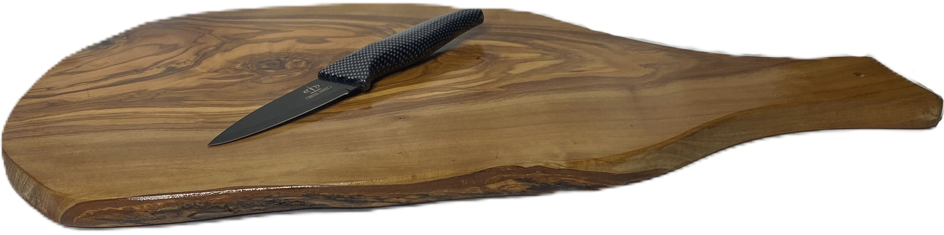 - Langlebig und widerstandsfähig: Olivenholz ist von Natur aus resistent gegen Schnitte und Kratzer, was dieses Schneidebrett zu einem langlebigen Begleiter in Ihrer Küche macht.