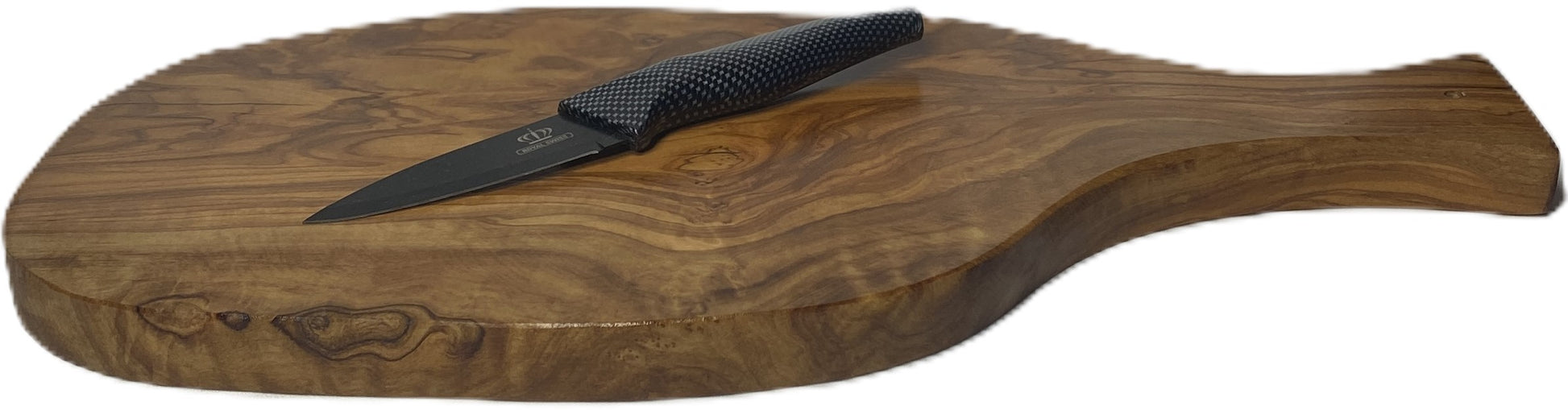 - Langlebig und widerstandsfähig: Olivenholz ist von Natur aus resistent gegen Schnitte und Kratzer, was dieses Schneidebrett zu einem langlebigen Begleiter in Ihrer Küche macht.