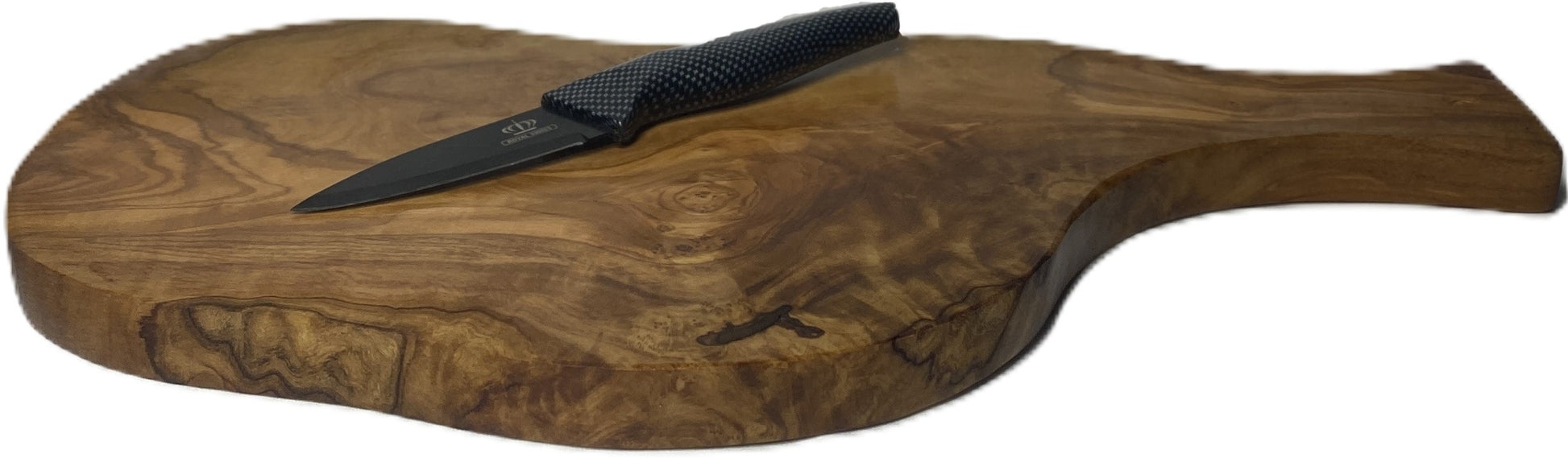 - Langlebig und widerstandsfähig: Olivenholz ist von Natur aus resistent gegen Schnitte und Kratzer, was dieses Schneidebrett zu einem langlebigen Begleiter in Ihrer Küche macht.
